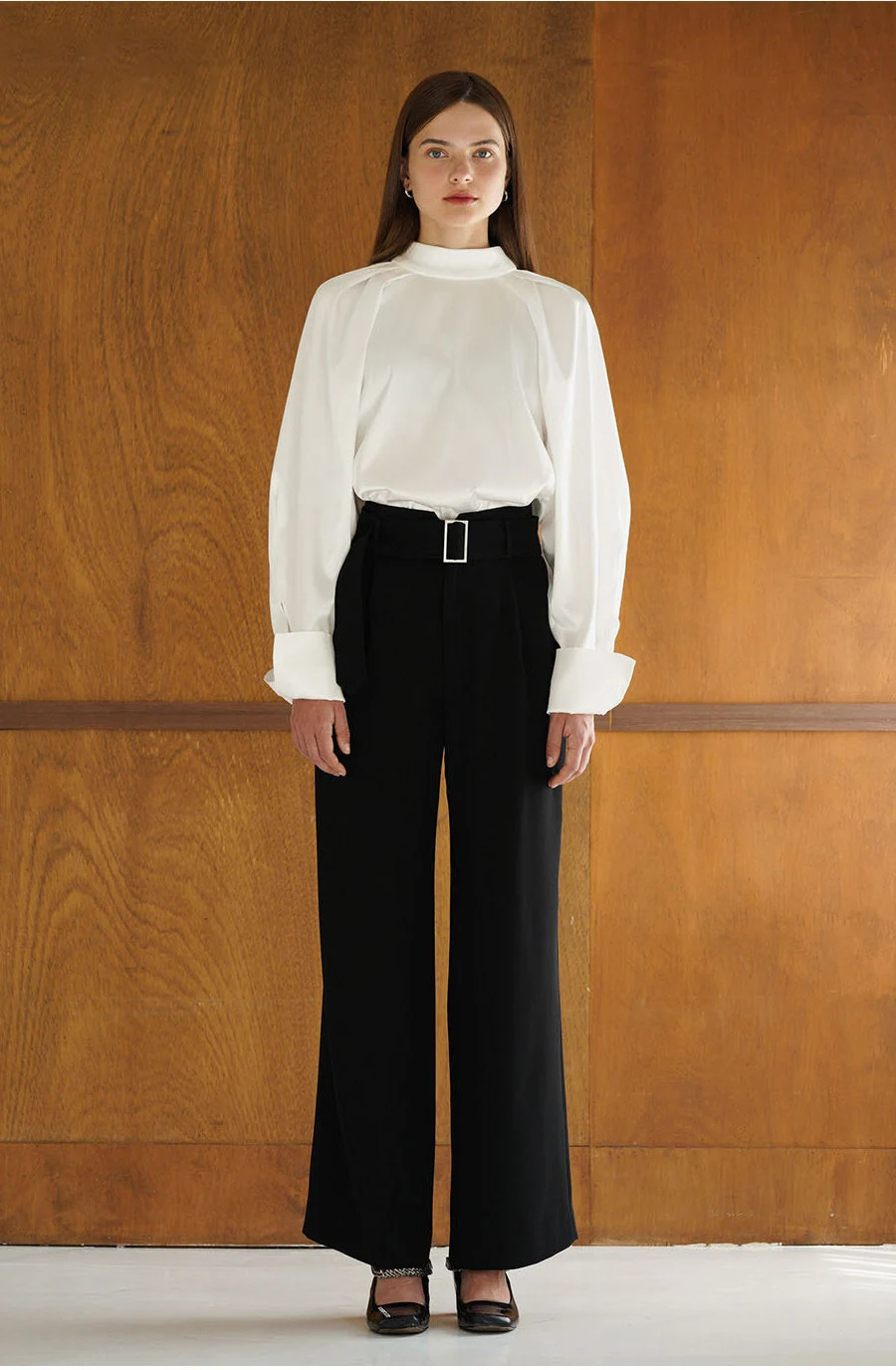 CopyIvory-colored high-necked shirt with sculpted shoulders