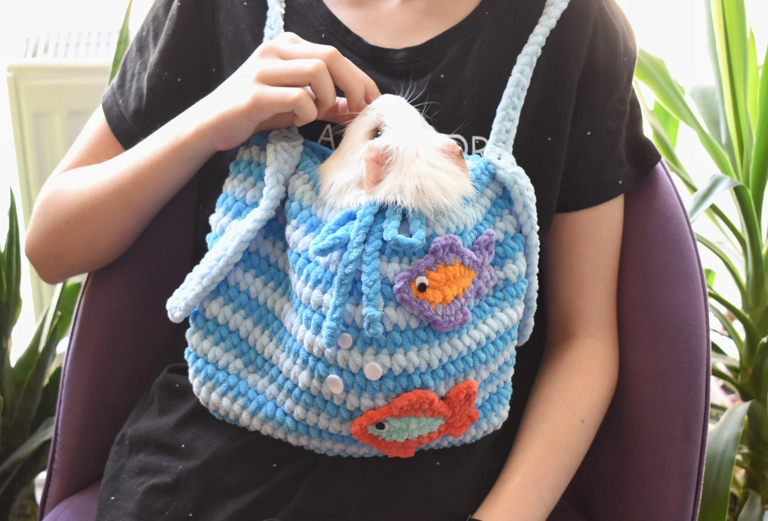 Want to take your pet on an “undersea journey”? This blue and white ocean-inspired knitted pet bag combines soft, velvety knit with fish and wave elements to create a comforting nest. Guinea pigs, hamsters, and other adorable pets will feel transported to an underwater fairytale world, instantly turning heads on the street.