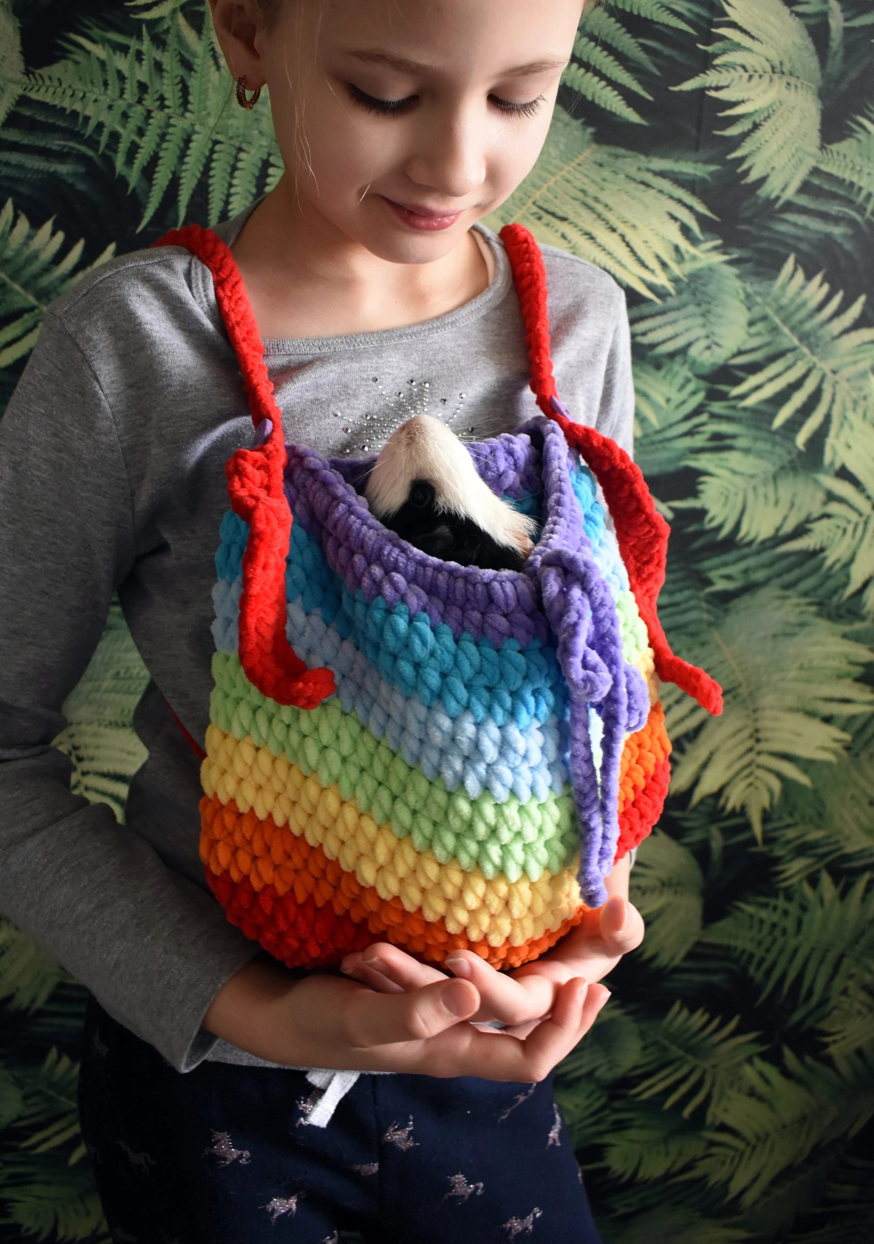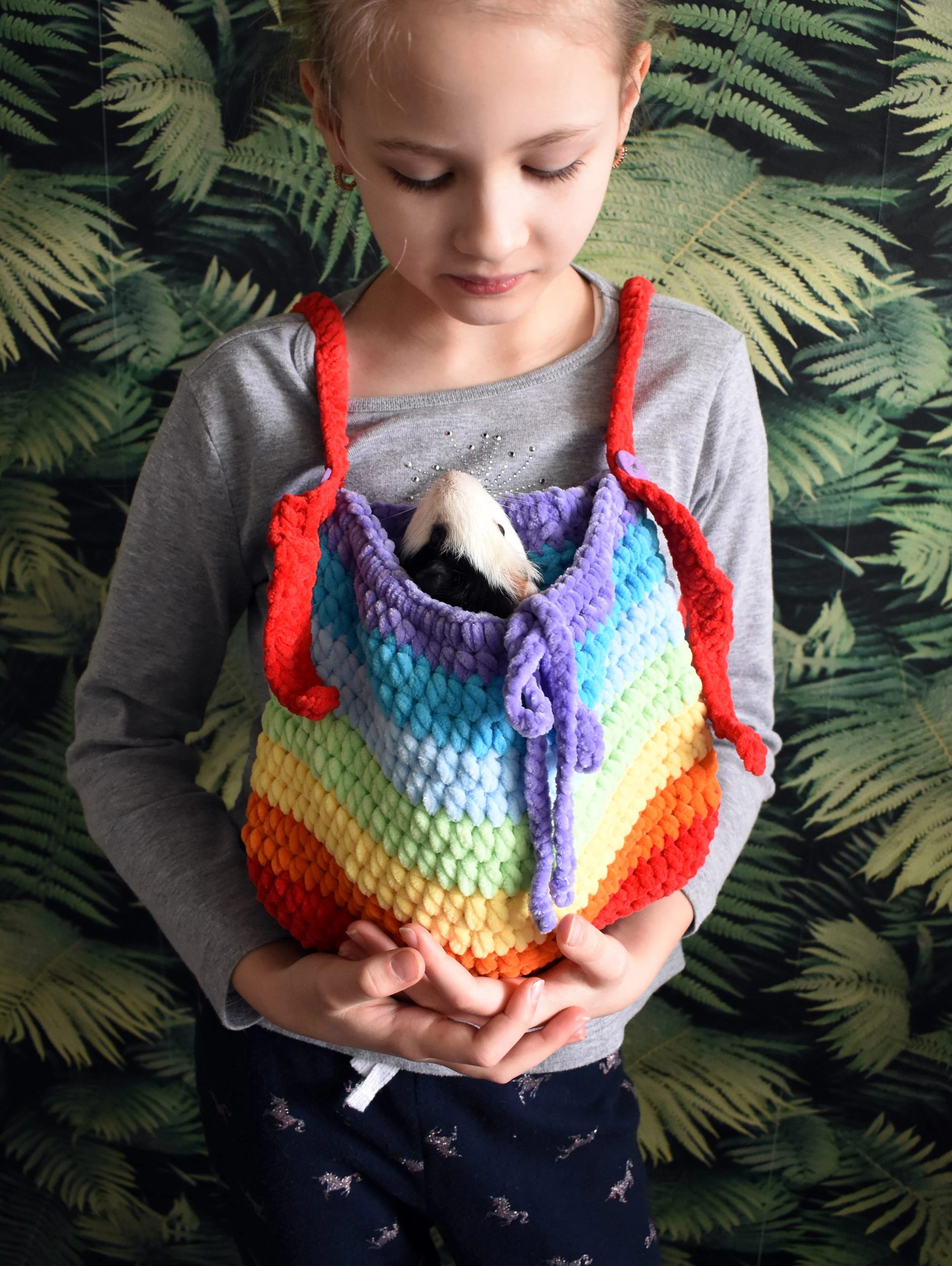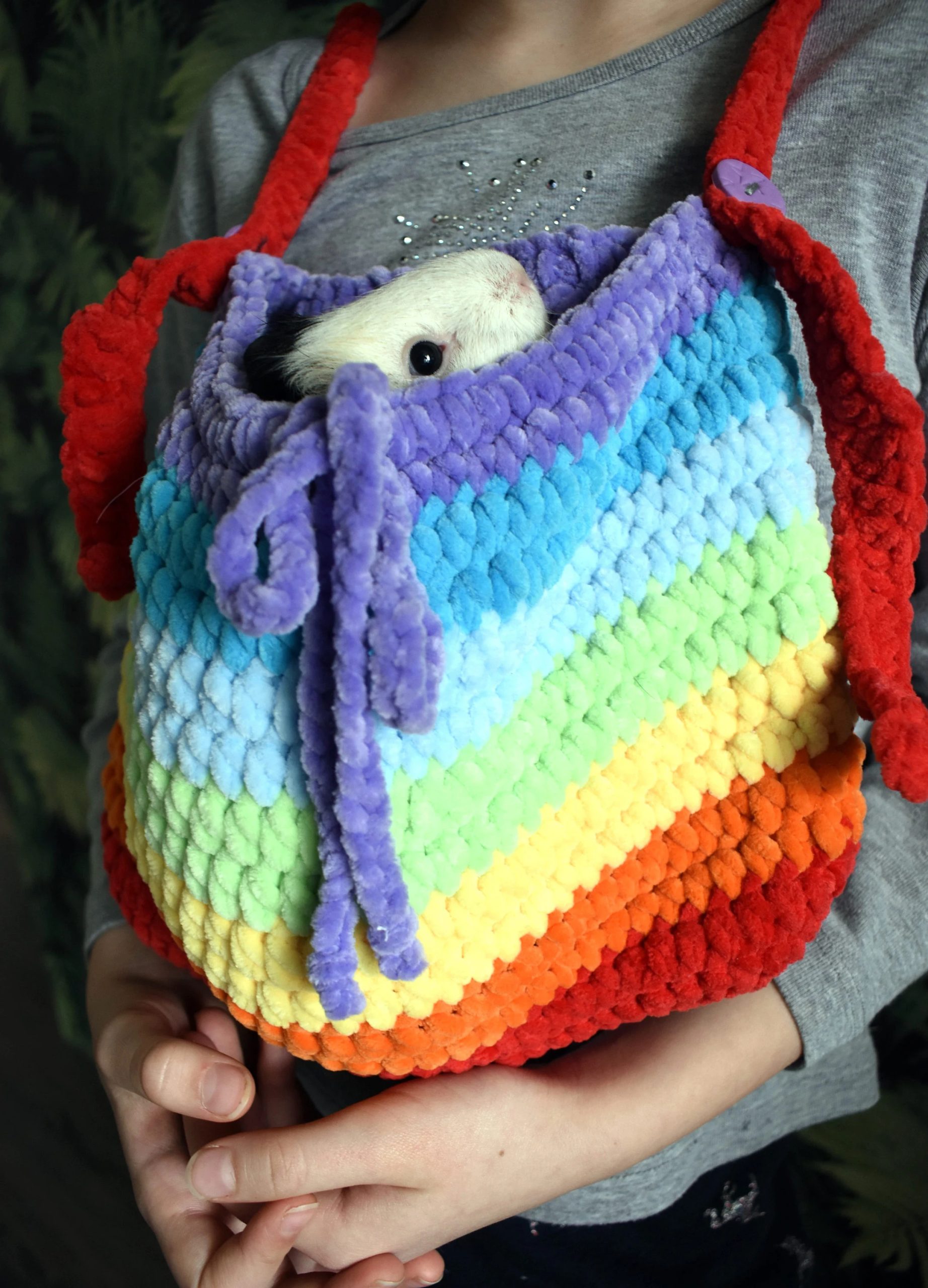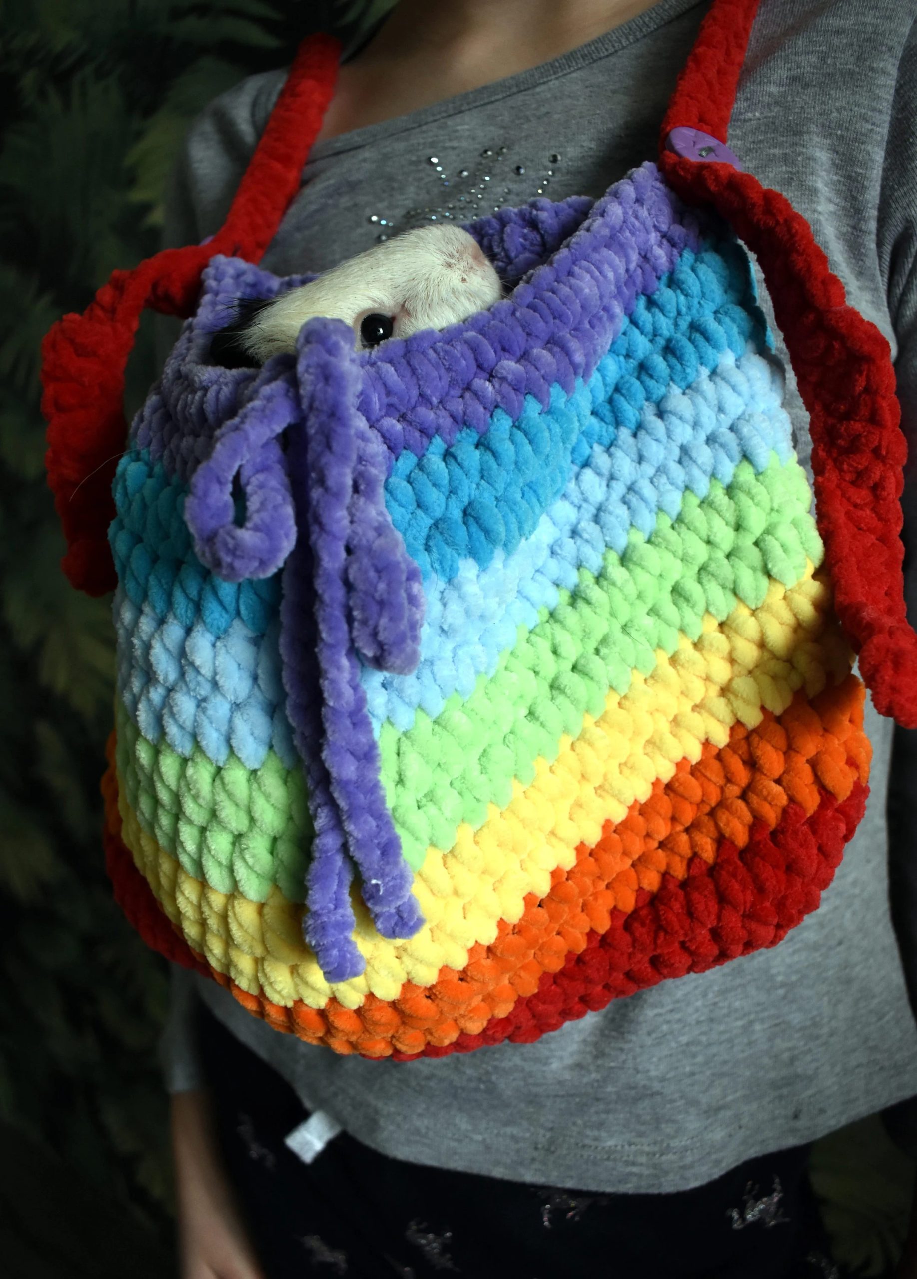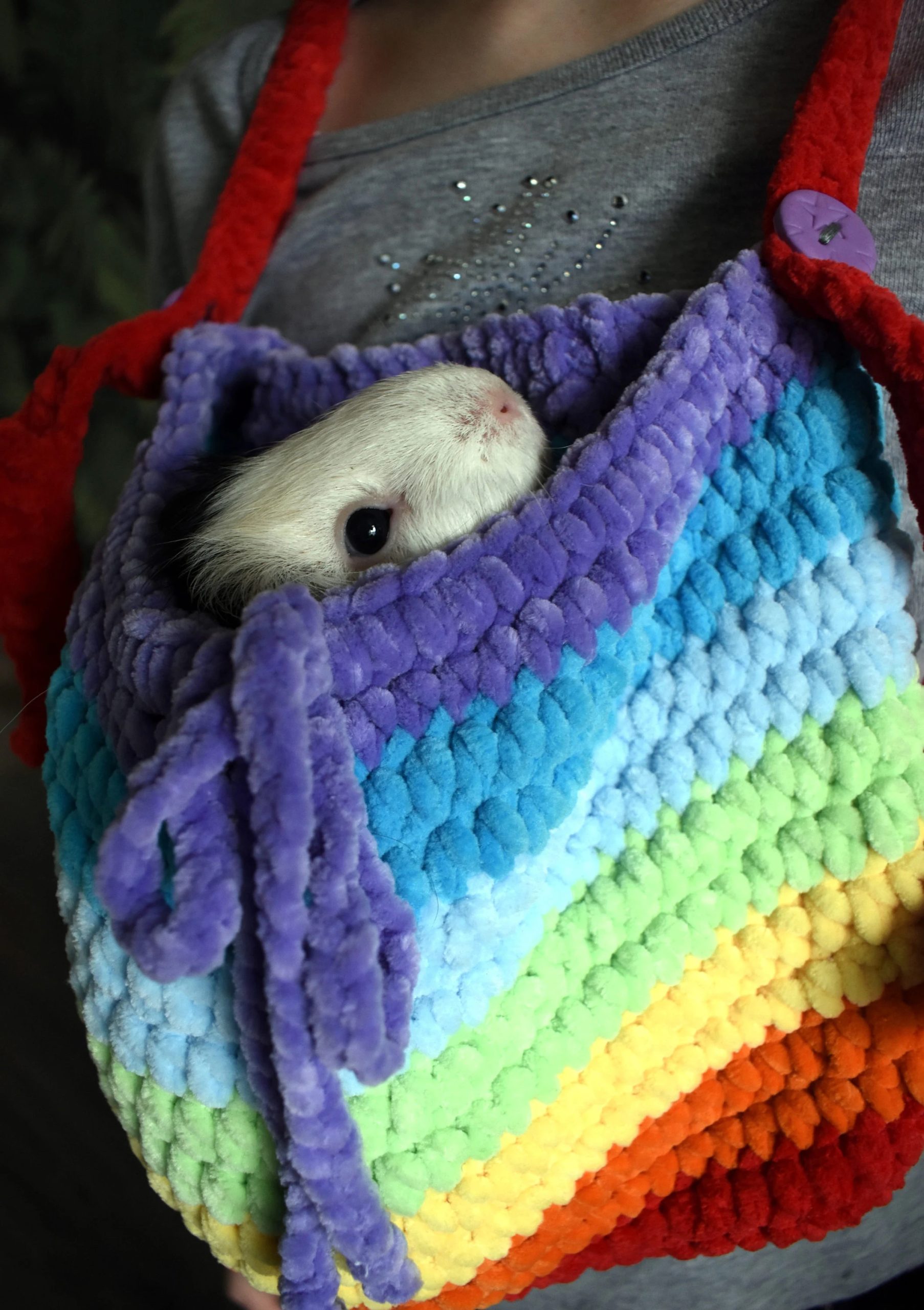 Want to take your pet on a relaxing rainbow adventure? This rainbow gradient knitted pet bag combines soft, velvety knit with a full-color gradient to create a dreamy nest. Cuddly pets like guinea pigs and hamsters nestle in it, feeling like they’re enveloped in a rainbow cloud. It’s an instant attention-grabber.